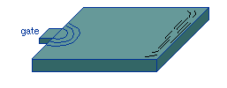 成(chéng)型製品表麵的(de)線狀(zhuàng)痕跡,此痕跡顯示(shì)了熔料流(liú)動的方向。